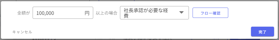 金額を入力できる申請は、申請金額に応じて承認フローを設定することができます。