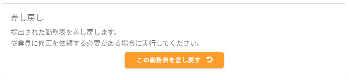 ダイアログが表示されるので「この勤務表を差し戻す」をクリックします。