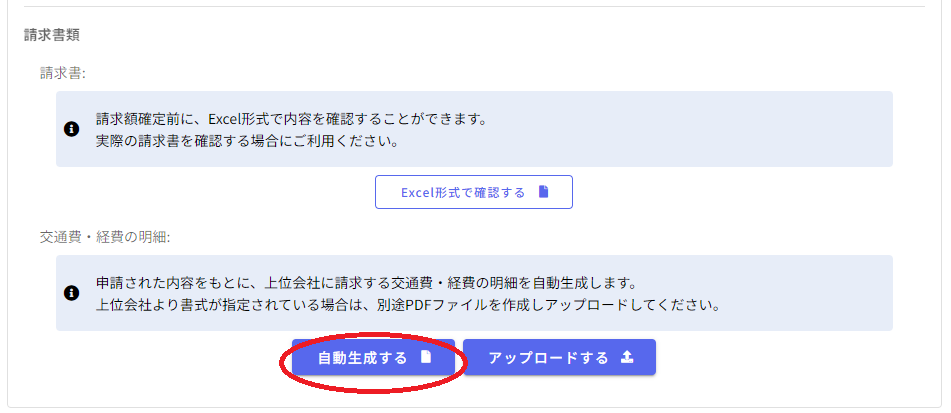 請求額の明細を生成し、請求書と合わせて上位会社へ連携することができます。